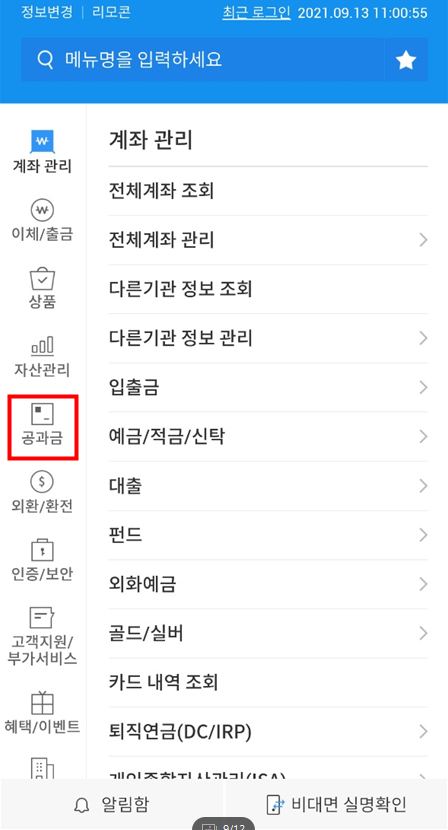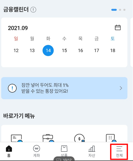 오늘은 우리은행 인터넷뱅킹을 통해서