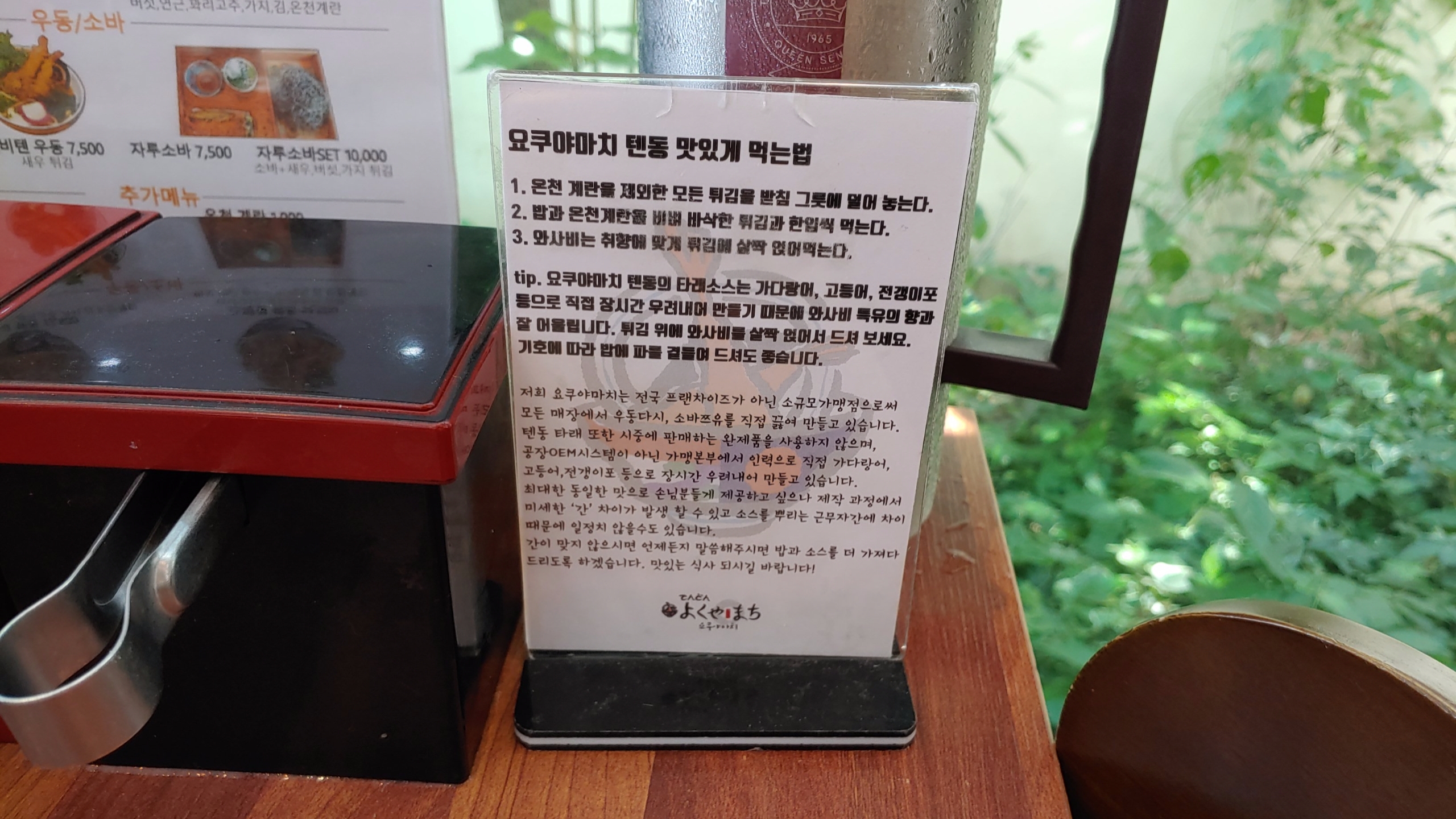 메뉴의 뒷부분에는 요쿠야마치 텐동 맛있게 먹는 법에 대해서 나옵니다.