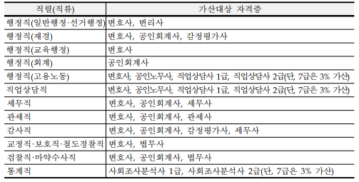 직렬별 가산 대상 자격증 부분도 참고하시기 바랍니다.