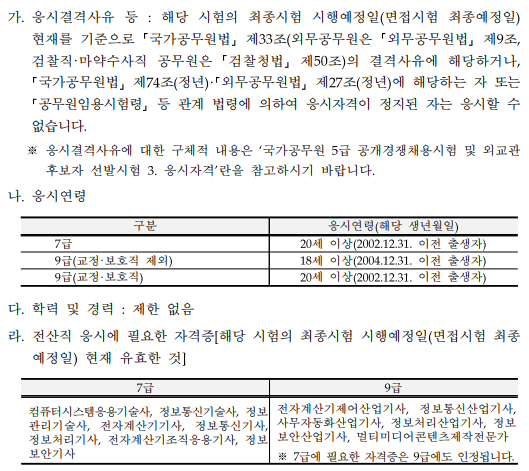 7급은 20세 이상(2002.12.31 이전 출생자)가 가능한것으로 보이네요.
