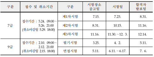 7급과 9급 접수 기간 및 시험 일정은 참고 하시기 바랍니다.
