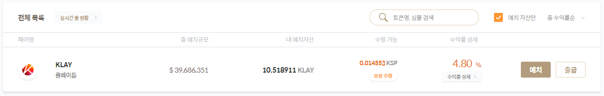페어 예치가 아닌 단일 예치는 수익률이 낮은편이나 코인의 가치 하락으로 인한 손해는 있을지언정