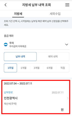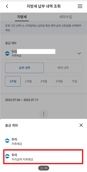 납부 내역이 나오지 않은 원인은 출금 계좌 별로 조회 내역을 보여주기 때문인데요.