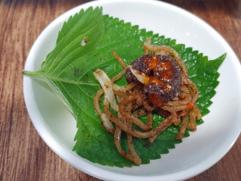 깻잎 하나에 백순대를 넣고 소스를 찍어서 쌈싸먹으면 얼마나 맛있게요