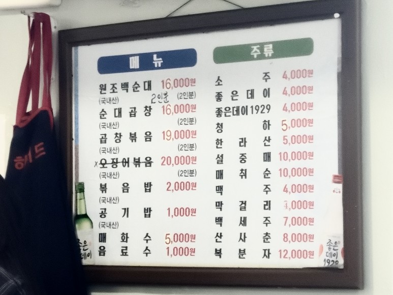 백순대가 기본 2인분 부터인데, 사장님이 1인분도 고맙게도 가능하다고 하셨습니다.