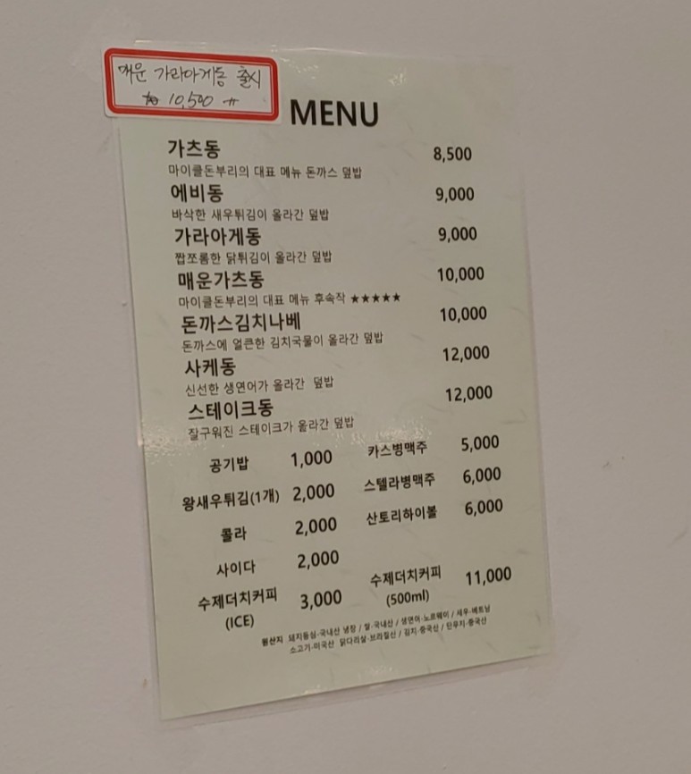 마이클돈부리 메뉴 및 가격은 참고 부탁드리겠습니다.