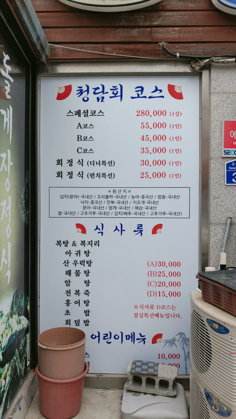 청담회집 가격표입니다. 참고하시기 바랍니다.
