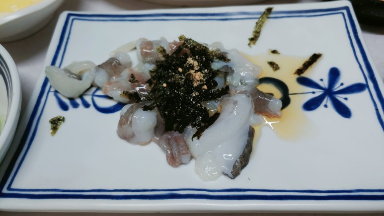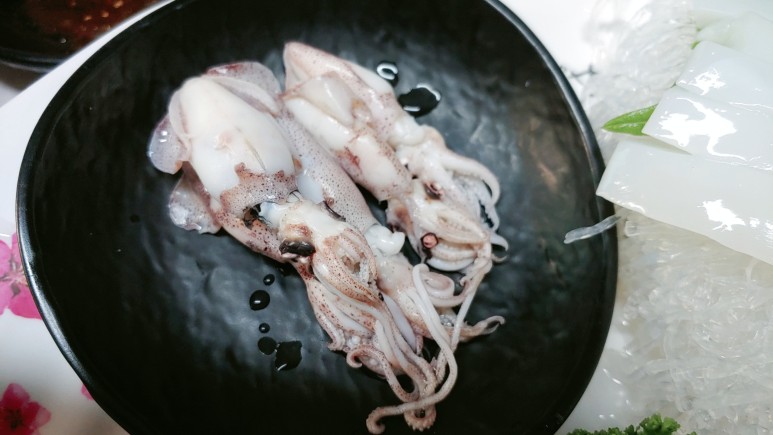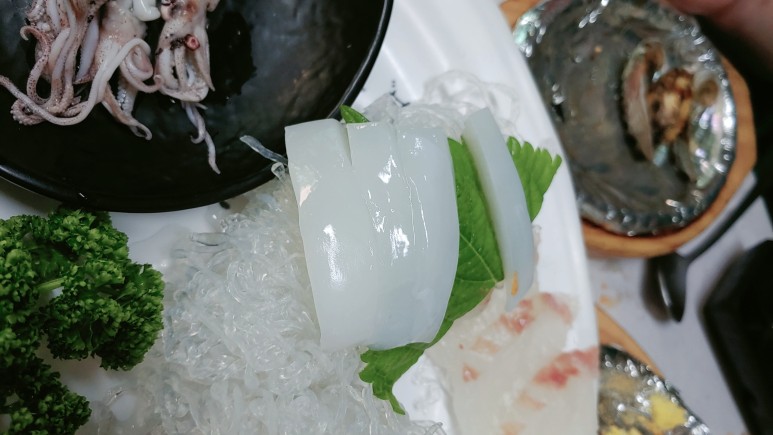 갑오징어 회입니다. 식감이 참 신기하다고 할까요.. 약간은 끈적거리는 느낌인데..