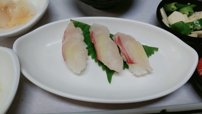 초밥이 나왔는데요. 광어회 초밥이었던것 같습니다.